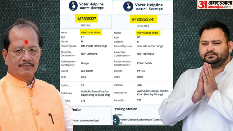 तेजस्वी यादव ने कहा कि मतदाता सूची प्रारूप में दो अलग-अलग जगह पीएम नरेंद्र मोदी के दुलरुवा विजय सिन्हा का नाम आ गया है। क्या अब चुनाव आयोग दो EPIC नंबर पर इनसे जवाब मांगेगी? क्या पटना और लखीसराय जिला प्रशासन डिप्टी सीएम विजय सिन्हा से जवाब मांगेगी? क्या इन पर प्राथमिकी दर्ज होगी? जितनी जल्दी मेरे ऊपर आरोप लगाकर नोटिस भेजी गई? क्या उतनी जल्दी विजय सिन्हा पर कार्रवाई होगी? तेजस्वी ने कहा कि अब विजय सिन्हा को सामने आकर यह बताना चाहिए कि उनके हस्ताक्षर से कैसे दो विधानसभा में उनके नाम दर्ज हैं। क्या वह दो जगह वोट गिराना चाह रहे हैं? अगर नहीं दो वह बताएं कि चुनाव आयोग की यह प्रक्रिया ही फर्जी है। उनके पास बीएलओ गए ही नहीं। बिना उनके हस्ताक्षर से ही दो अलग-अलग विधानसभा में उनके नाम दर्ज कर लिए गए है?